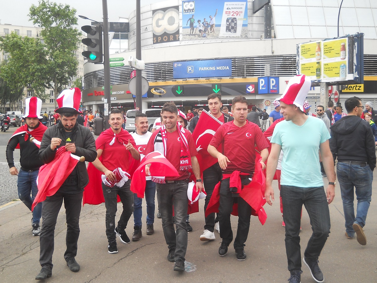 Dacă vineri Parisul a fost colorat în albastru/galben astăzi s-a înroșit de-a dreptul, joacă Turcia cu Croația pe Parc des Princes. Măsurile de securitate au revenit și ele la cele de maximă siguranță.