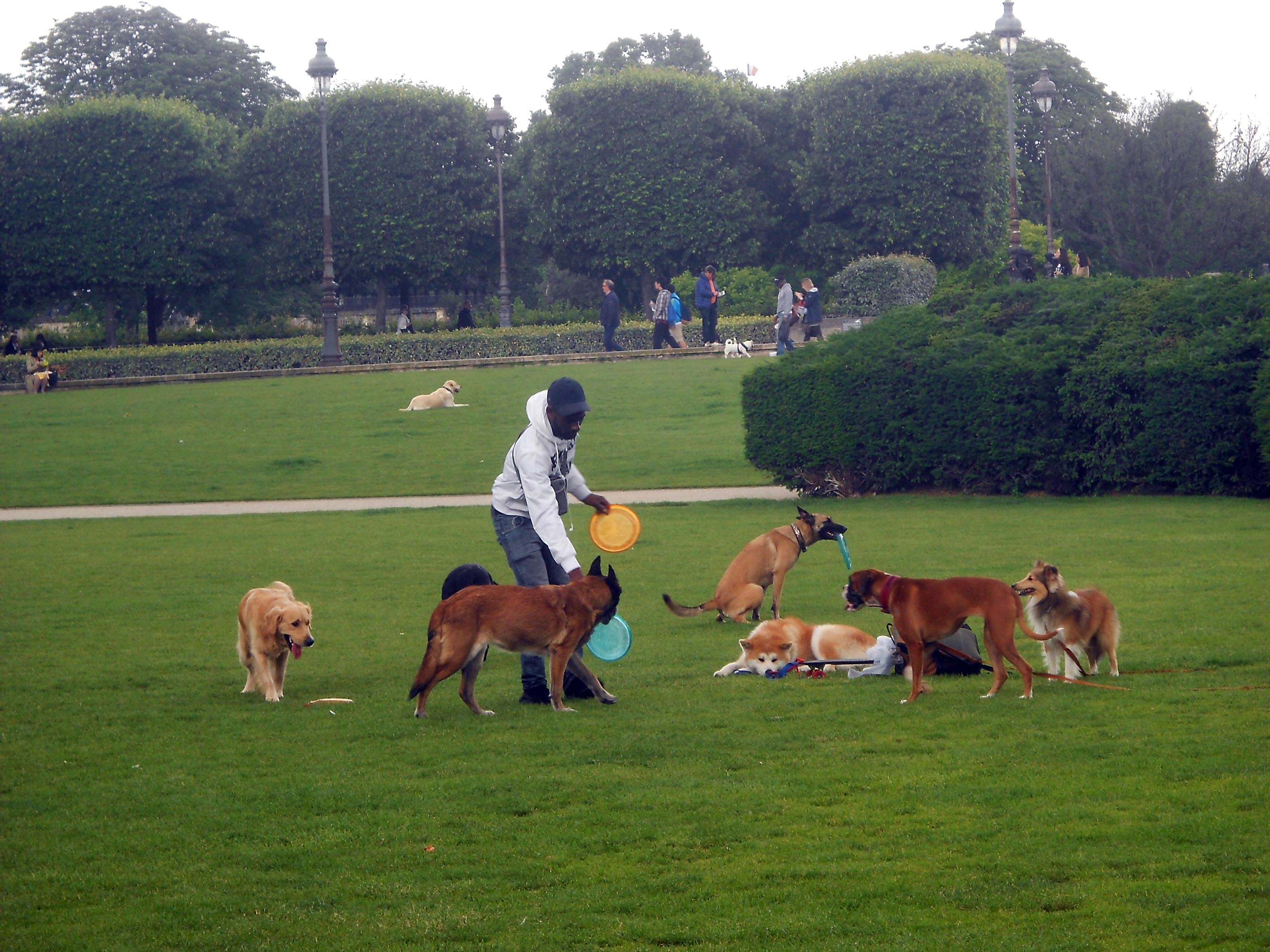 Dar, trebuie remarcat că în metropola franceză fotbalul nu e totul. Lumea trăiește ca și până acum, un tânăr iese de exemplu cu grupul de câini pe care îi are în grijă în grădinile Tuileries, în cea mai importantă și cea mai veche grădină franceză, în fața Luvrului, fără să-i pese de fotbal și de EURO 2016.