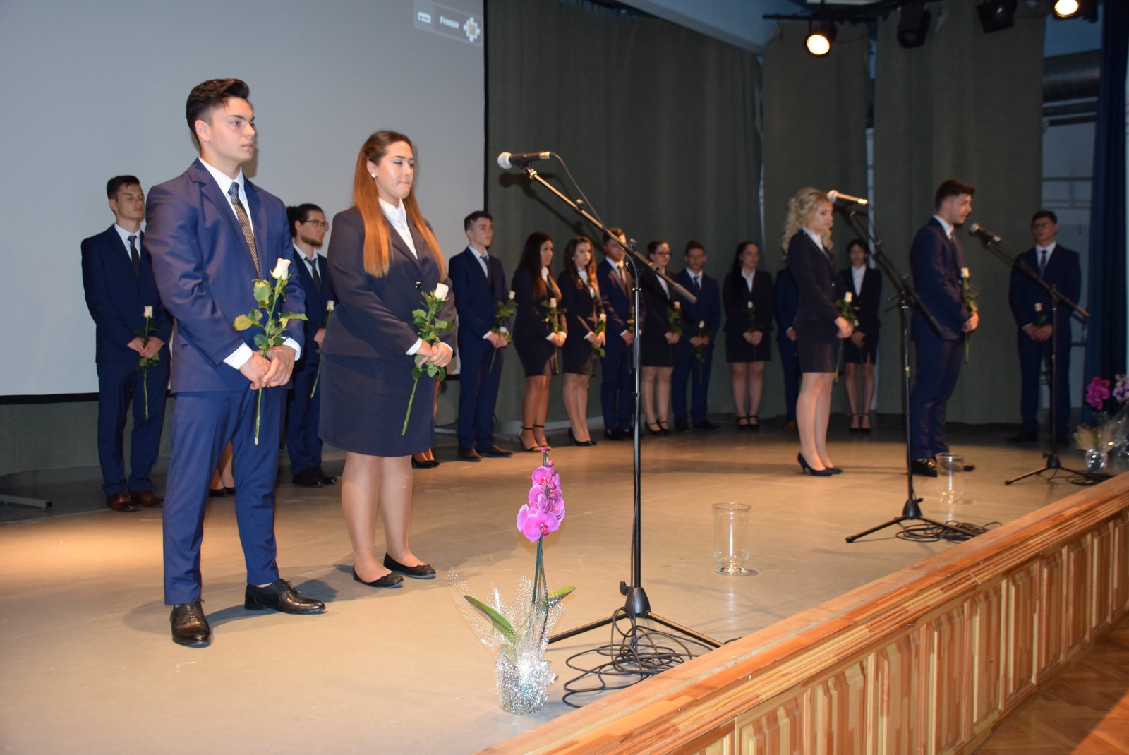 Sala de spectacole a Centrului Cultural Românesc s-a dovedit din nou a fi neîncăpătoare – elevi, profesori, părinţi, bunici şi prieteni au asistat la serbarea de absolvire a tinerilor care vor părăsi şcoala ai căror elevi au fost timp de 4 sau chiar 12 ani. La eveniment au fost de faţă PS. Siluan, episcopul românilor ortodocşi din Ungaria, pastorul Petrică Creţu de la Biserica Baptista din Micherechi, reprezentanţi ai consiliului local, consulii generali ai reprezentanţelor diplomatice ale României din Jula şi Seghedin, Florin Trandafir Vasiloni şi Daniel Banu, dar şi reprezentanţi ai Universităţii Aurel Vlaicu din Arad.