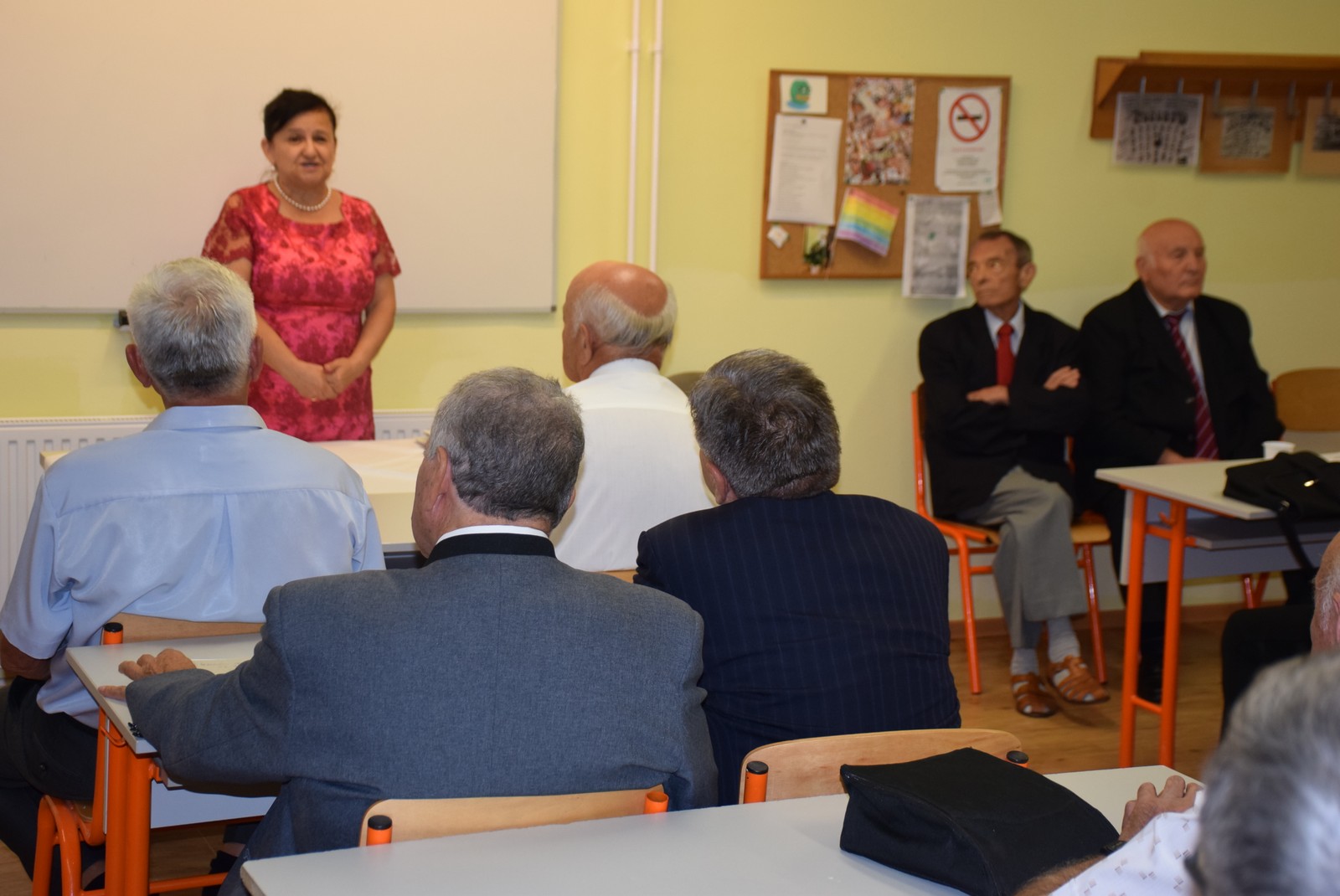 Întâlnirea nu a decurs în mod tradiţional, cu oră de diriginţie, deoarece nici unul dintre foştii diriginţi nu mai sunt printre cei vii. Foştii elevi au fost salutaţi de directoarea actuală a liceului, doamna Maria Gurzău Czeglédi, care le-a vorbit despre situaţia de azi a instituţiei, care este tot mai numeroasă şi tot mai modernă, iar copiii care azi frecventează această şcoală au mult mai multe posibilităţi faţă de părinţii sau bunicii lor. Totodată şi-a exprimat bucuria că mulţi dintre foştii elevi, din primele promoţii, şi-au dat copiii sau nepoţii la această şcoală, întărind în continuare spiritul familial al acestei instituţii.