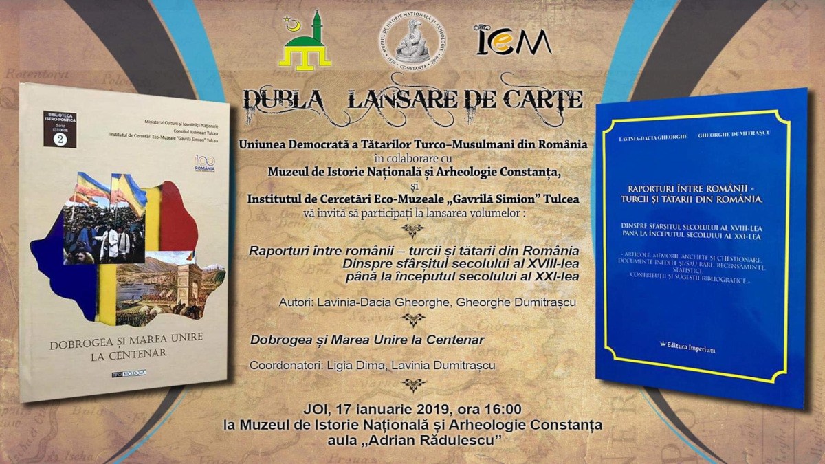 Dublul eveniment editorial organizat de Uniunea Democrată a Tătarilor Turco-Musulmani din România (UDTTMR), în colaborare cu Muzeul de Istorie Națională și Arheologie din Constanța și Institutul de Cercetări Eco-Muzeale (ICEM)„Gavrilă Simion“ din Tulcea, aduce în atenţia cititorilor două volume extrem de interesante.