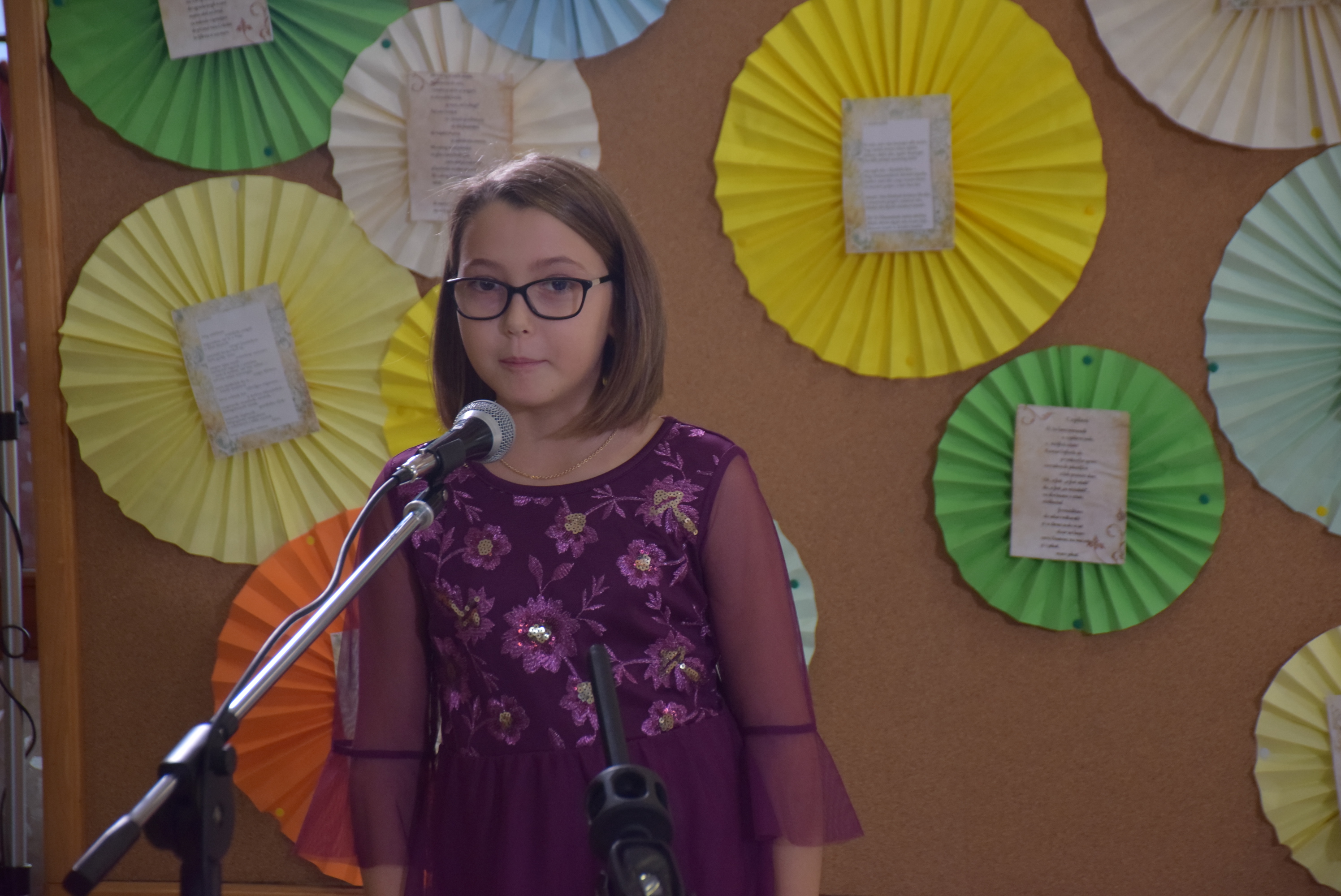 Instituţia şi-a primit oaspeţii şi concurenţii cu un frumos decor de toamnă, cu tineri îmbrăcaţi în port popular, iar în aula şcolii, unde s-a desfăşurat concursul, mai multe panouri au fost îmbrăcate în desene despre Lucian Magdu şi poeziile sale, lucrări jurizate de către Iulianna Stella Machhour, profesor de desen la şcoala din Bătania.