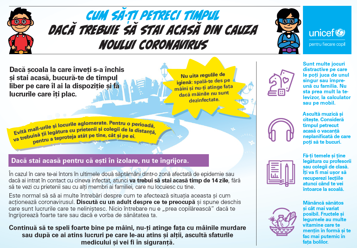 Federația Internațională a Societăților de Cruce Roșie și Semilună Roșie (FICR), UNICEF și Organizația Mondială a Sănătății (OMS) au emis ieri noi recomandări ce urmăresc protejarea copiilor și a școlilor împotriva transmiterii virusului COVID-19.