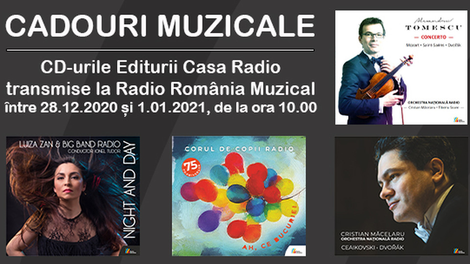 Începând cu 28 decembrie, cinci dintre cele mai frumoase albume muzicale apărute la Editura Casa Radio la finalul acestui an vor fi transmise la postul Radio România Muzical, în fiecare zi, începând cu ora 10:00.