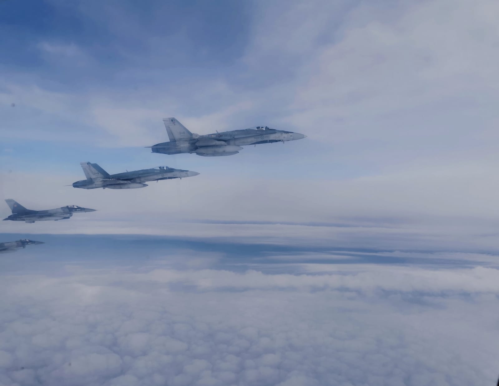 Camelia Stroiu (realizator rubrică): Militarii români şi canadieni care participă la misiunea de poliţie aeriană întărită a NATO au desfăşurat un exerciţiu demonstrativ luni, 1 noiembrie, în Baza 57 Aeriană Mihail Kogălniceanu. Forţele Aeriene Române au fost reprezentate de un avion de transport C 27 J- Spartan şi de aeronave F-16 Fighting Falcon în timp de Forţele Aeriene Regal Canadiene au participat cu aeronave F-18 Hornet.