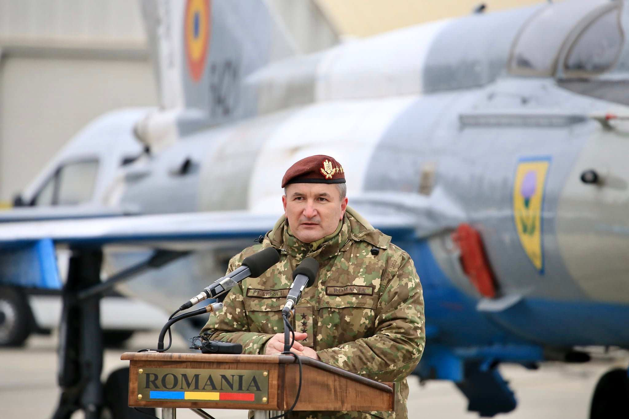 Adrian Gîtman (realizator rubrică): Dislocarea avioanelor Eurofighter Typhoon în România face parte din planul de acțiune al NATO pentru securizarea flancului estic al alianței și este un răspuns la provocările mediului de securitate actual. Îl ascultăm pe șeful statului Major al Apărării, generalul Daniel Petrescu, la ceremonialul din Baza 57 aeriană.