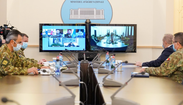 Teodorei Mazăre (realizator rubrică): Ministrul apărării naționale, Vasile Dîncu, și șeful Statului Major al Apărării, generalul Daniel Petrescu, au intrat în această săptămână în legătură prin videoconferință cu echipele de comandă ale structurilor dislocate în misiuni externe în Balcanii de Vest, Polonia, Marea Mediterană și în cadrul operației NATO „Allied Solace”.