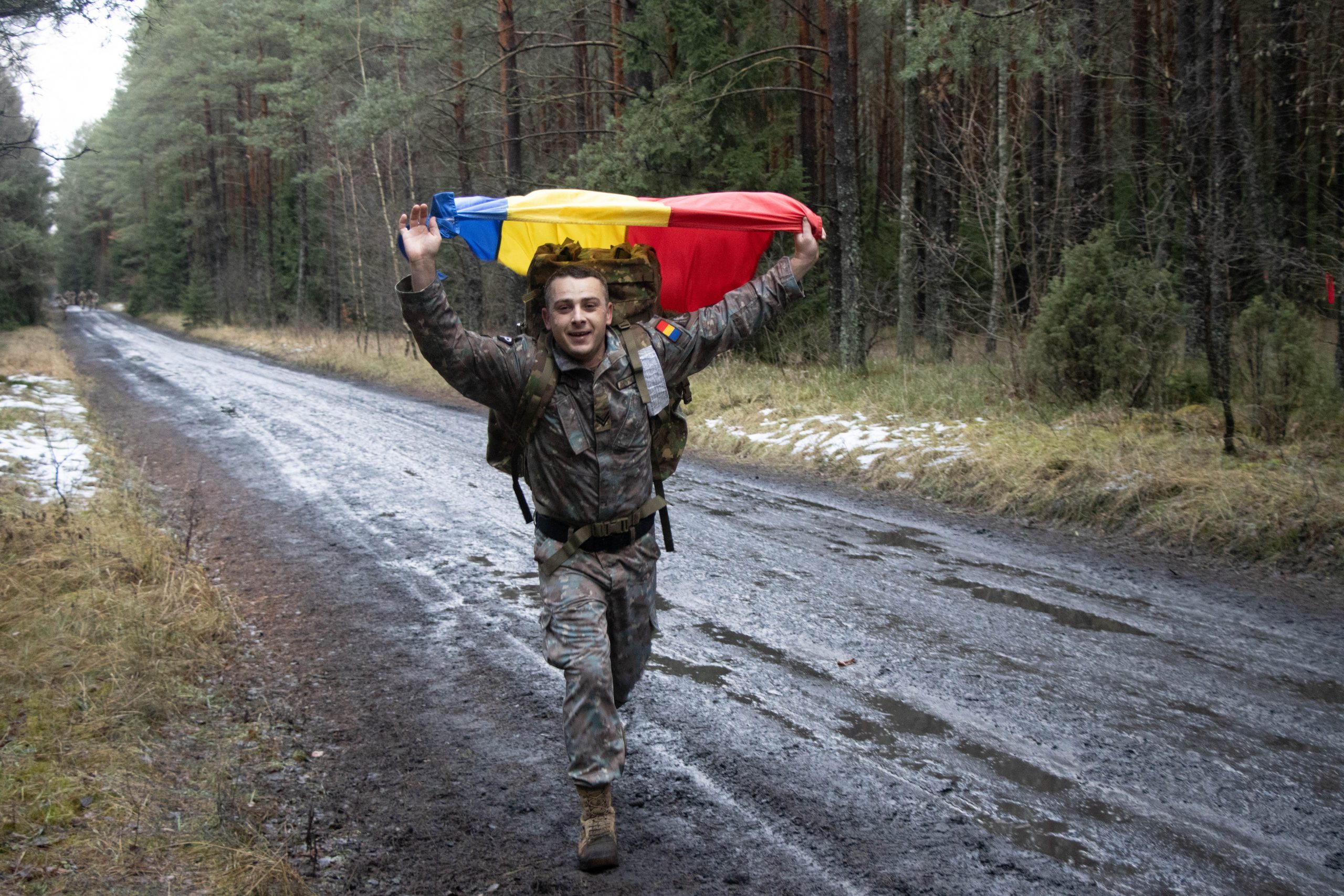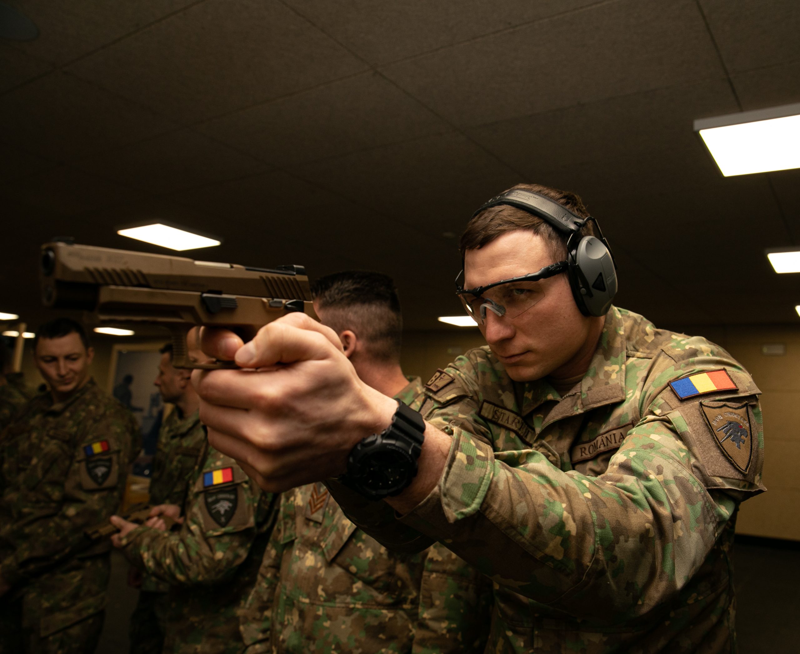Teodorei Mazăre (realizator rubrică): Trecem la misiunea din Polonia, unde la mijlocul lunii decembrie peste 400 de militari ai Grupului de Luptă, împreună cu cei din cadrul Brigăzii IV Apărare Teritorială a Poloniei, au intrat în cursa pentru dobândirea insignei Forțelor Armate Germane pentru competență militară. Probele de concurs au constat într-un test de evaluare a capacităților motrice, trageri cu pistolul tip M-17 și un marș în teren variant.