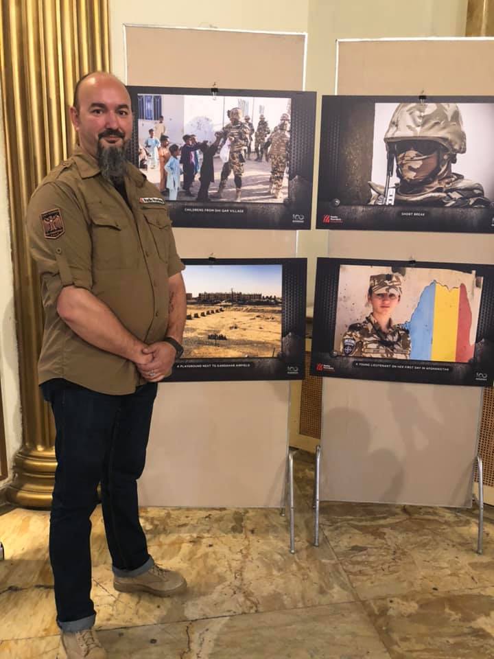 Expoziția a avut un parcurs internațional, care la un moment dat m-a uimit până și pe mine, a ajuns la Consulatul General al României la Los Angeles, prin țară în mai multe locuri, inclusiv acasă la Mădălin, în garnizoana de la Buzău, la Institutul Cultural Român din București, dar și la Cartierul General al NATO unde a fost vernisată chiar la reuniunea ministerială la care au luat parte toți miniștrii apărării din țările NATO și a fost un moment în care s-a vorbit la superlativ despre armata română, la cel mai înalt nivel, la Cartierul General al NATO, dar din punctul meu de vedere militarii noștri merită pe deplin toate superlativele pe care le-am auzit despre ei de-a lungul timpului atât în Cartierul General al NATO cât și în teatrul de operații din Afganistan.