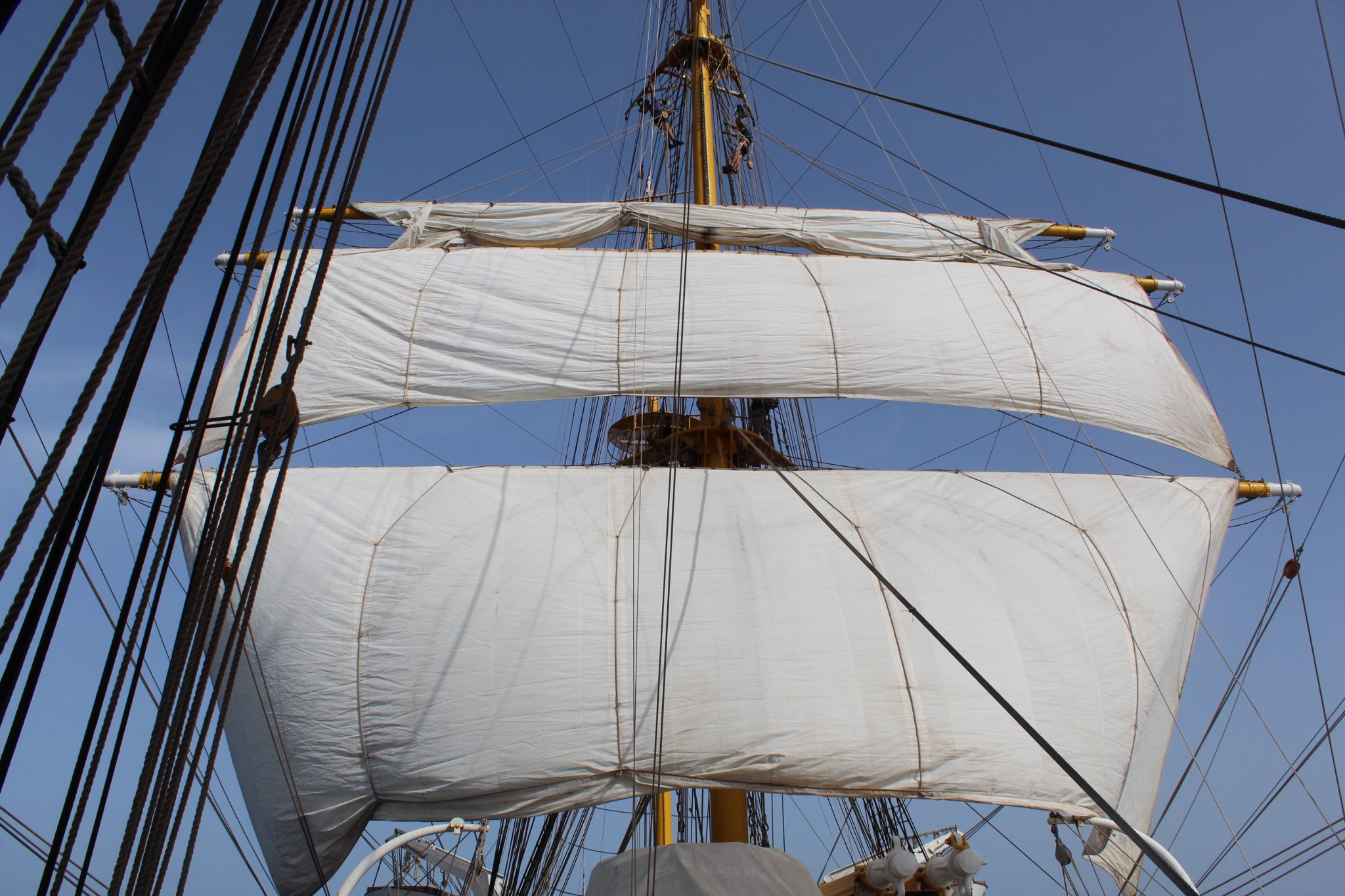 Locotenentul Ștefan Scutelnicu, ofiţerul secund al Navei-școală ‘Mircea’: Instrucția se desfăşoară în condiții foarte bune. Am trecut de fazele incipiente. În privința anumitor activități, mai ales când vine vorba de arboradă, au devenit tot mai experimentați și ne bazăm pe ei că fac o treabă foarte bună acolo sus.