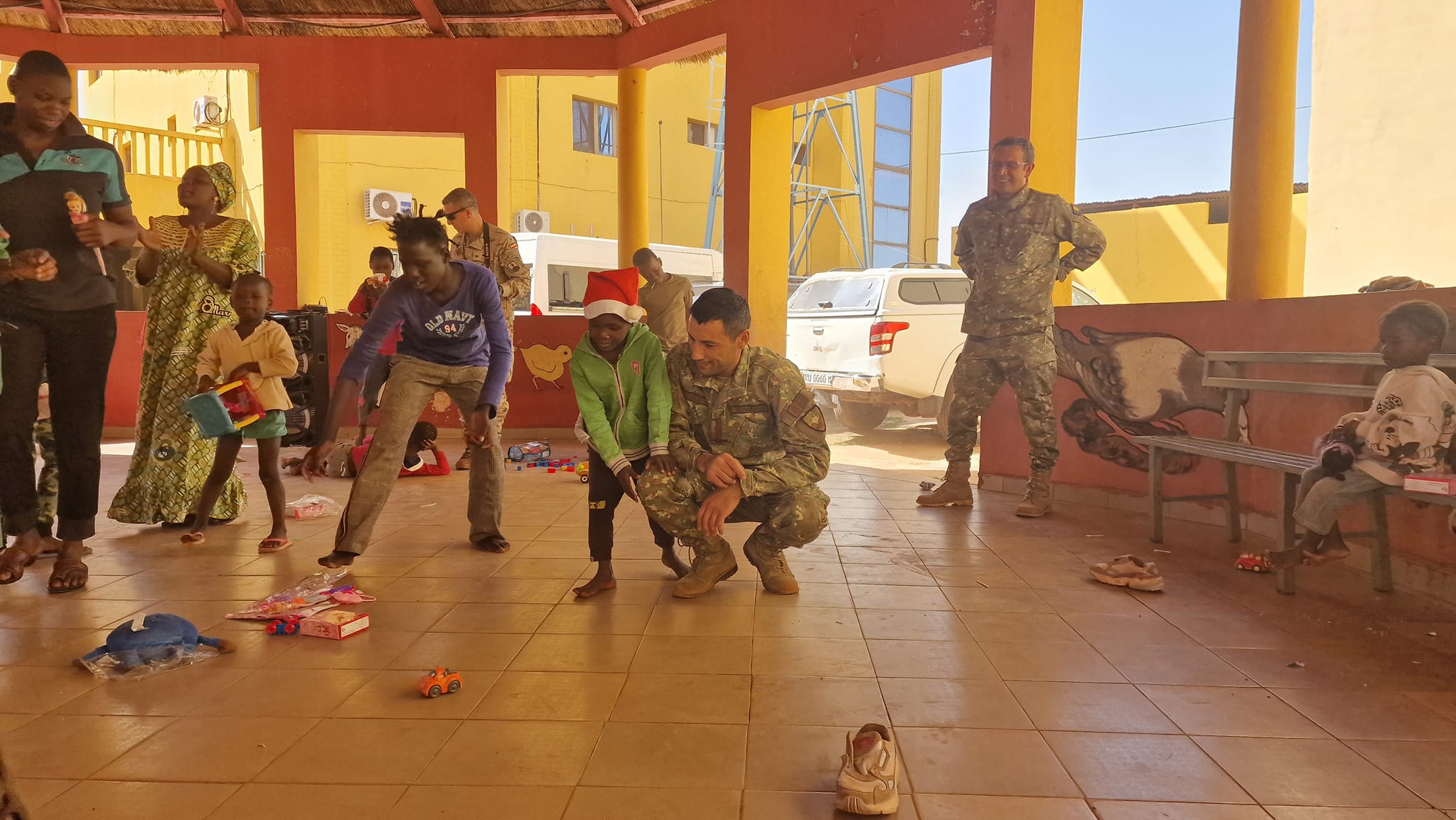 Gabriela Saksa (realizator rubrică): 24 de militari români au trecut pragul dintre ani pe continentul african, mai exact în Baza militară Bamako din Mali, acolo unde își desfășoară misiunea sub egida Uniunii Europene, alături de militari din alte 14 națiuni.