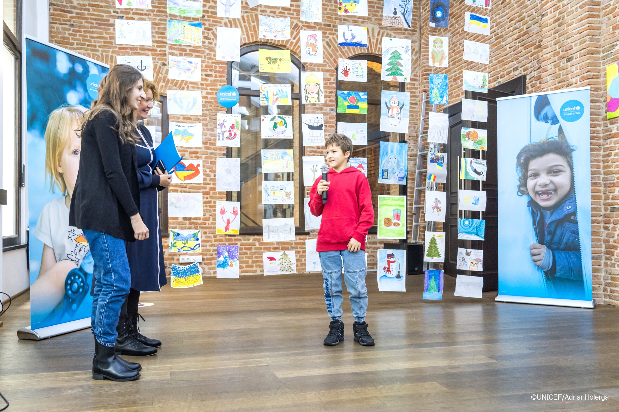 Prin această expoziție de artă, UNICEF încurajează copiii să fie martori-cheie, actori și mesageri cu privire la situația actuală din Ucraina și din țările vecine, cu privire la mediul social în această situație de urgență și cu privire la probleme mai structurale.