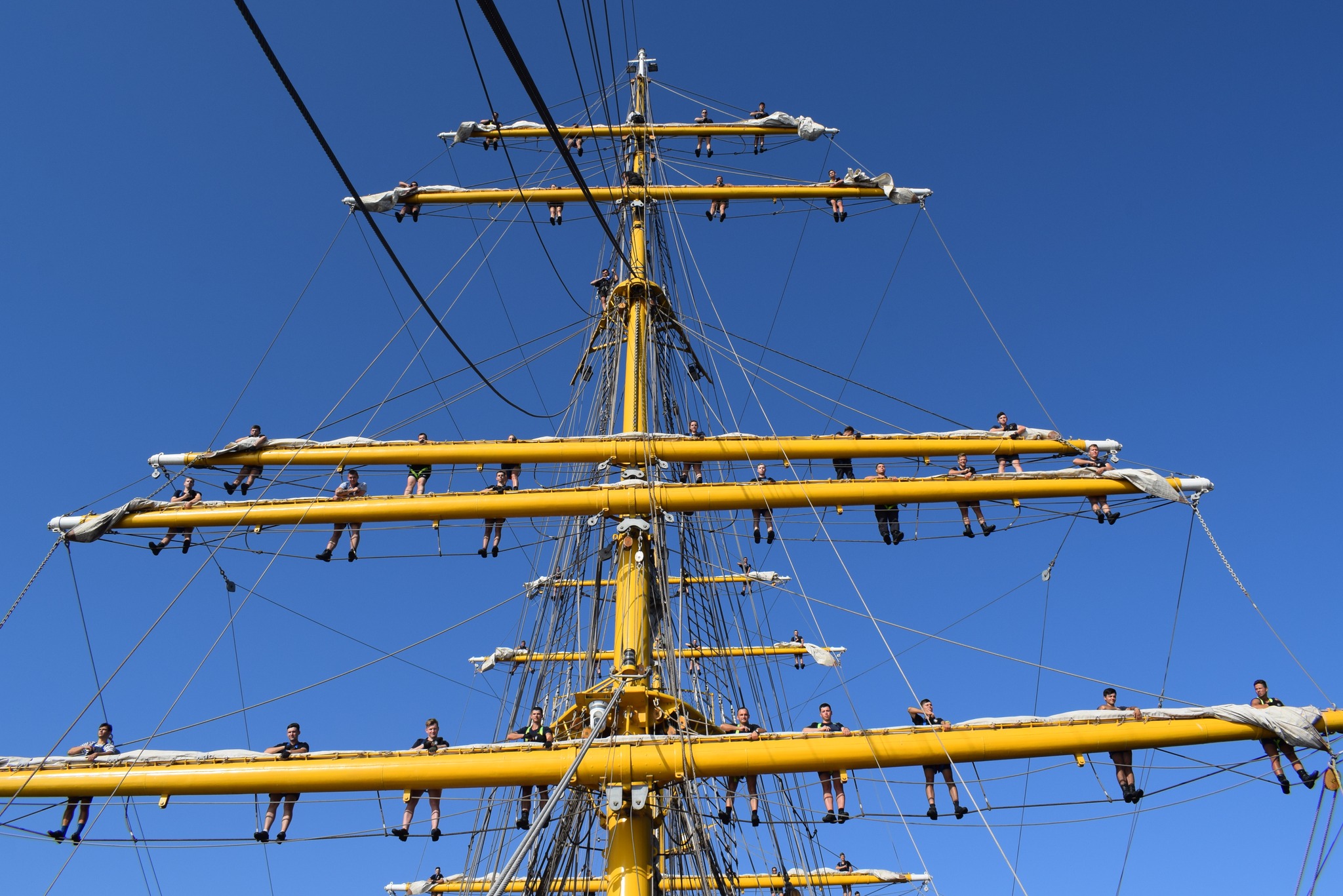 Au luat parte la ședințe de navigație cu sextantul, atât ziua, cât și noaptea, iar antrenamentele în arboradă au fost la ordinea zilei.