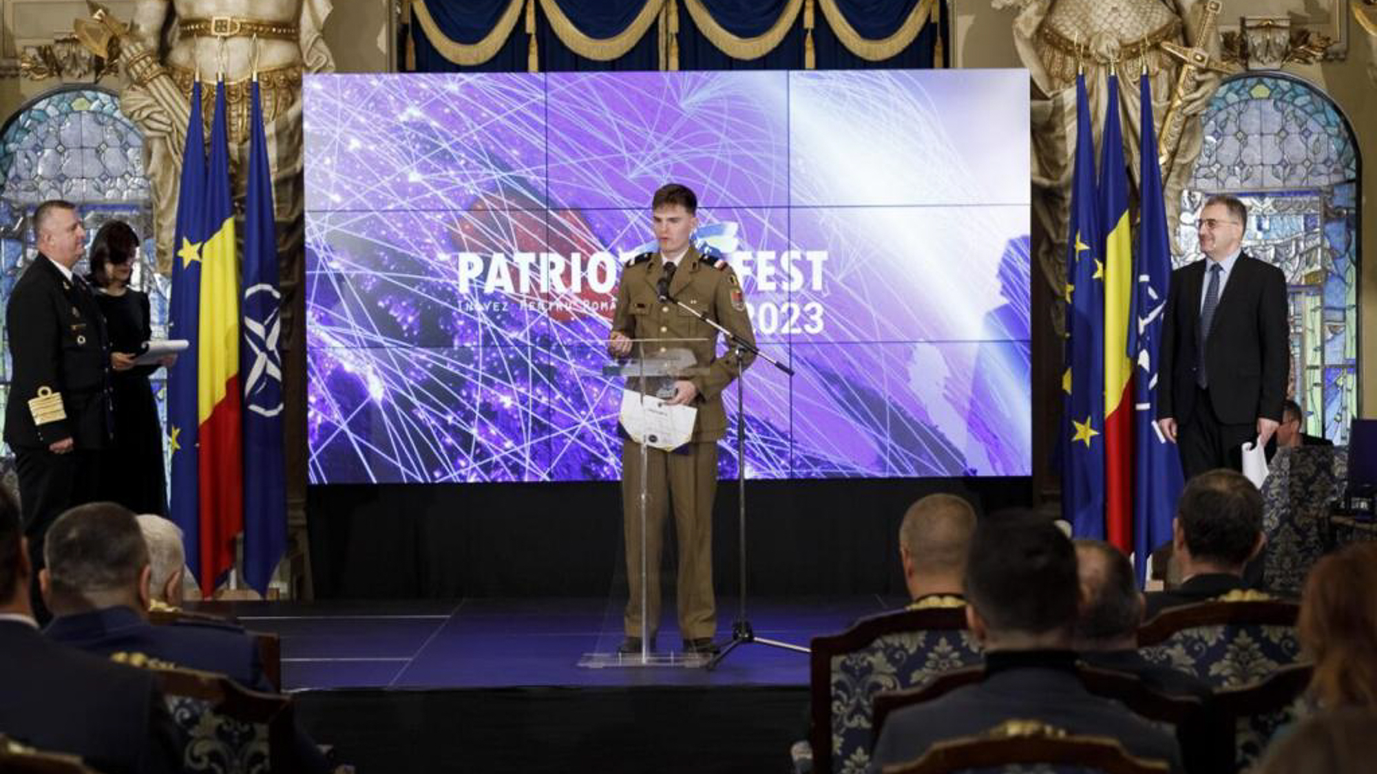 Adrian Gîtman (realizator rubrică): Cele mai importante inovații în domeniul securității naționale au fost premiate marți la Palatul Cercului Militar Național din capitală. Gala „PatriotFest” a ajuns la a șasea ediție și a fost organizată de Ministerul Apărării Naționale, în parteneriat cu organizația „New Strategy Center”. La categoria „Creativitate pentru securitate”, premiul I a fost obținut Diana Nițescu pentru proiectul „Quantum Odyssey”, o aplicație web de e-learning. Secțiunea „Inteligență artificială” a fost câștigată de Cornel Amariei, cu inovația „LUMEN”, o pereche de ochelari cu înaltă tehnologie pentru nevăzători.