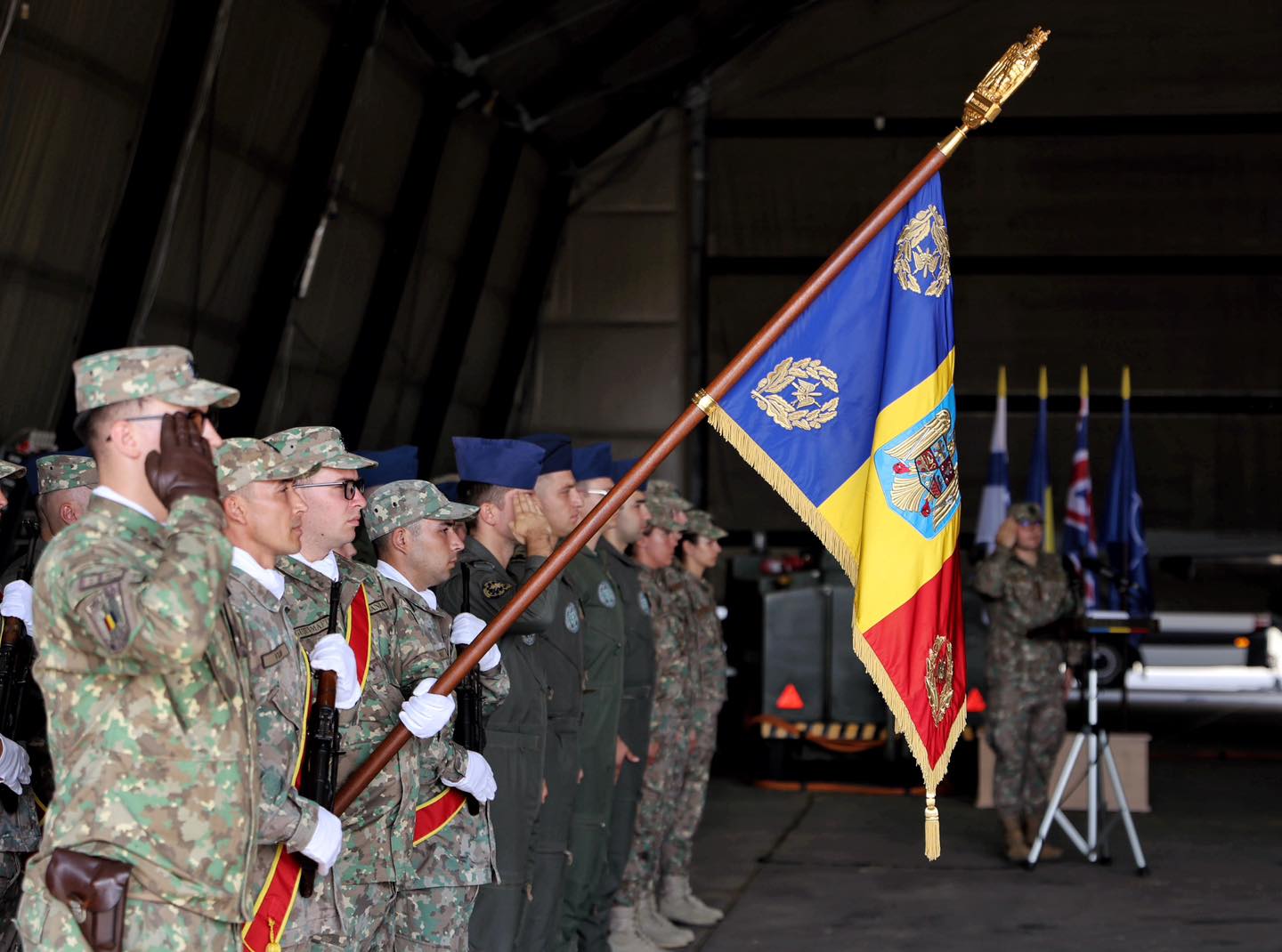 Leonard Baraboi: E de prisos să vă povestesc cât de importantă este această cooperare. Suntem membri ai NATO. Cred că prezența detașamentelor finlandez și britanic aici, la Kogălniceanu, demonstrează o dată în plus, dacă mai era nevoie, coeziunea care există la nivelul NATO. Provocările sunt cele pe care le știți foarte bine. Avem zile și nopți care nu sunt atât de senine pe cât ne-am dori, dar împreună suntem aici de pavăză țării și putem să raportăm la finalul fiecărei zile „Cer senin” și misiune îndeplinită.