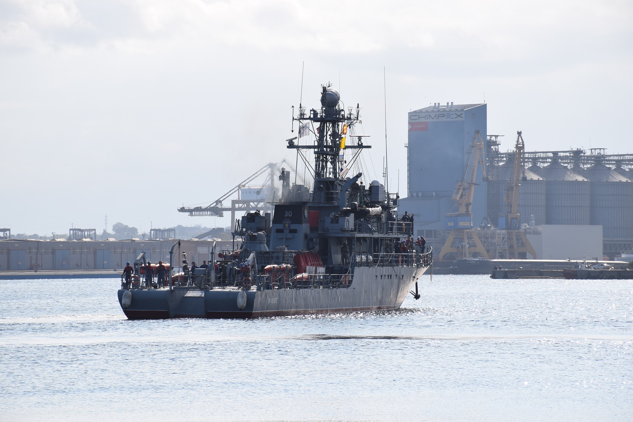 Teodora Mazere (realizator rubrică): Ultima staționare de astăzi este la bordul Dragorului maritim 30 ‘Sublocotenent Alexandru Axente’, care participă timp de nouă zile la a doua activare a Grupului Operativ pentru Combaterea Minelor Marine din Marea Neagră. În perioada 25-27 septembrie, Forțele Navale ale Turciei au organizat exercițiul multinațional NUSRET ’24, la care au participat navele din cadrul grupării și cărora li s-a alăturat Puitorul de mine și plase 274 ‘Viceamiral Constantin Bălescu’, navă care din luna iunie a preluat comanda grupării navale permanente a NATO de luptă contra minelor. Căpitan comandorul Ionuț Diaconu, șeful de Stat Major al Divizionului 146 Nave Minare-Deminare.