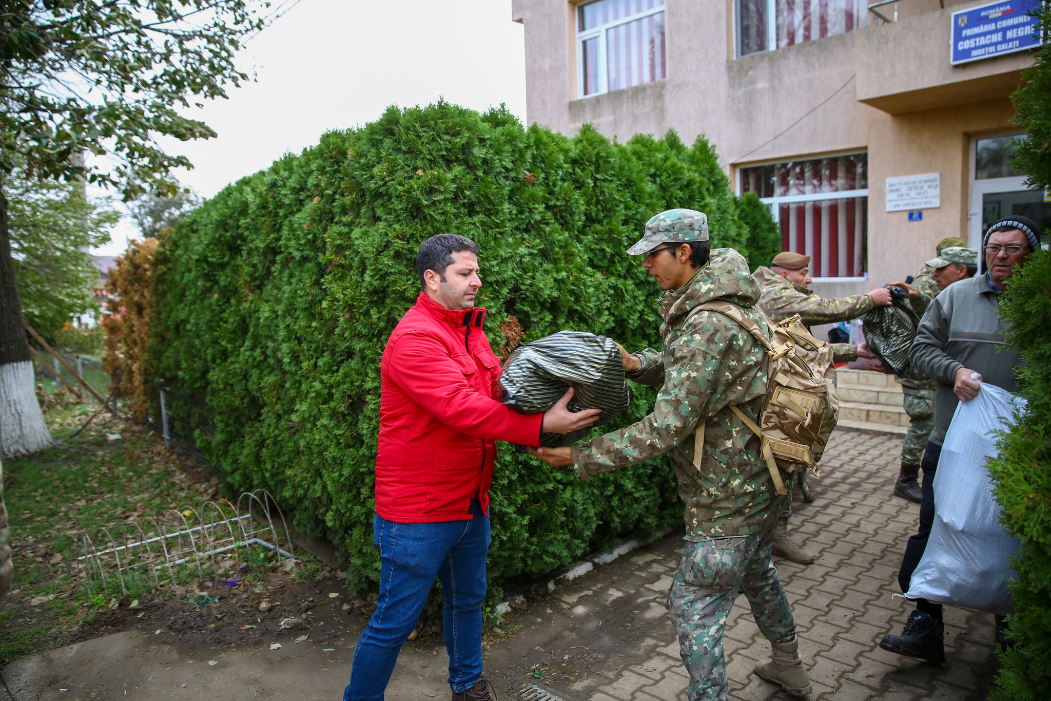 Eduard Bachide: Ministerul Apărării a fost din primele ore prezent aici și va fi în continuare. Am venit acuma cu opt tiruri, cu ajutorul asociaţiei pe care am creat-o în cadrul Ministerului Apărării – ONOR – și cu ajutorul sponsorilor am reușit să aducem diverse lucruri care să le fie de folos oamenilor. Cel mai important este că armata este lângă și va fi prezentă atâta timp cât este nevoie. În momentul de față avem 200 de oameni care lucrează în schimburi. Dacă va fi nevoie, vom suplimenta.