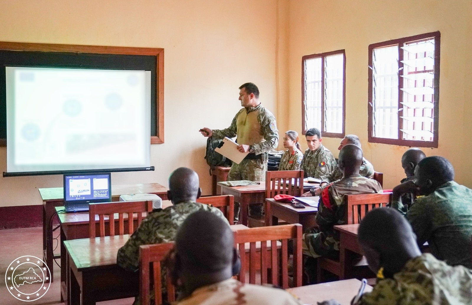 Teodora Mazere (realizator rubrică): O delegație condusă de ambasadorul Uniunii Europene în Republica Centrafricană, Diego Escalona Paturel, a efectuat o vizită în baza Moana din Republica Centrafricană. Prin această vizită s-a urmărit evaluarea nivelului de îndeplinire a obiectivelor misiunii Uniunii Europene în Republica Centrafricană. De asemenea, delegația a vizitat camp Kassai, baza militară unde funcționează Școala Națională de Subofițeri. România deține comanda misiunii Uniunii Europene în Republica Centrafricană din luna octombrie a anului 2023, în prezent exercitându-și mandatul generalul de brigadă Gabriel Oros.