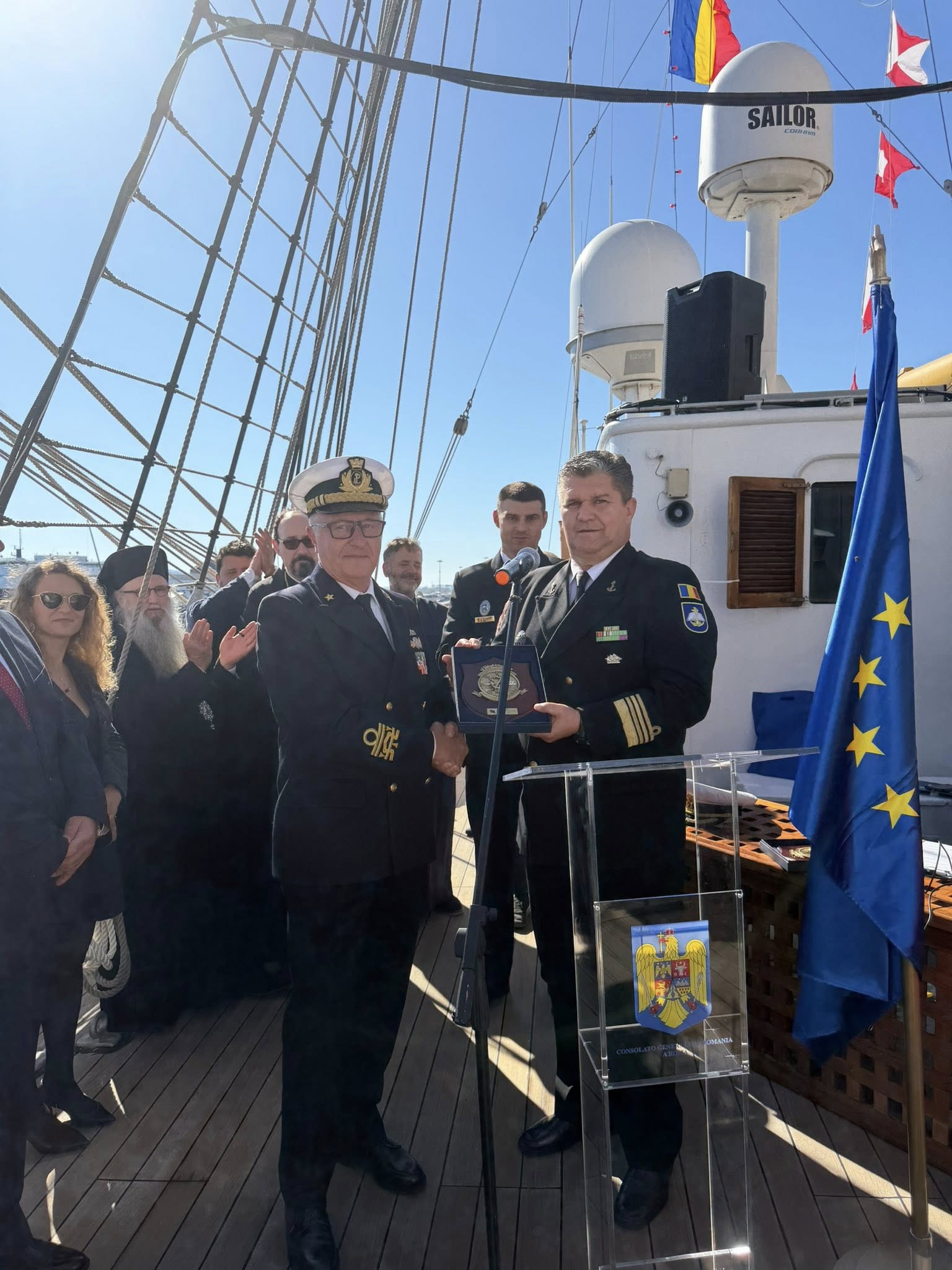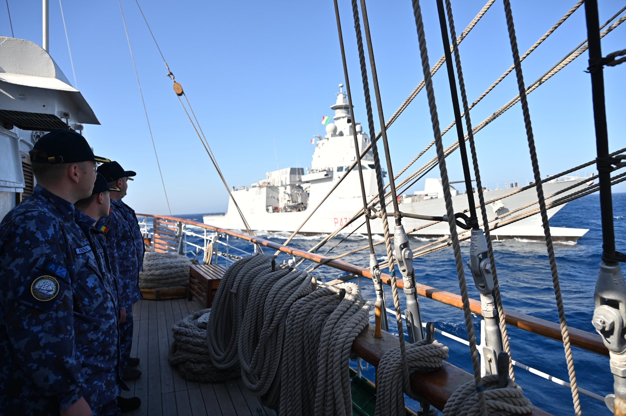 Teodora Mazere (realizator rubrică): De pe uscat ne mutăm pe mare, unde, după aproape 1400 de mile marine parcurse, Nava-Școală „Mircea” se află în acest weekend în portul Cagliari, din Sardinia.